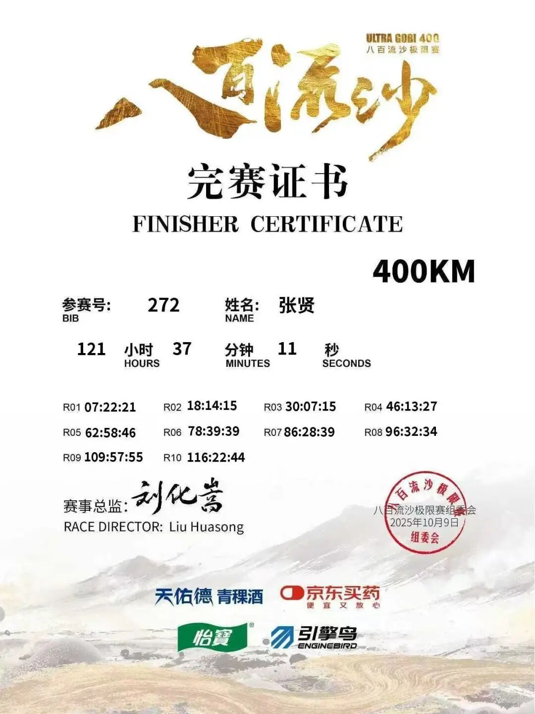 121小时、419公里,这不仅是一场比赛,更是一场心智的修行。他在戈壁中穿越白昼与黑夜,在孤独中找到坚持,在奔跑中找到答案。