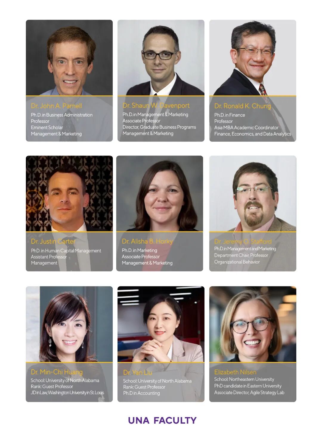 北阿拉巴马大学(University of North Alabama),简称UNA,创建于1830年, 是一所具有近两百年历史的州立大学,是美国阿拉巴马州最古老的公立大学。UNA商学院是全球最高国际商管学院评鉴委员会AACSB会员,通过了AACSB的认证,AACSB是商学院的最高认证,全世界仅有不超过5%的商学院取得了这项精英认证。